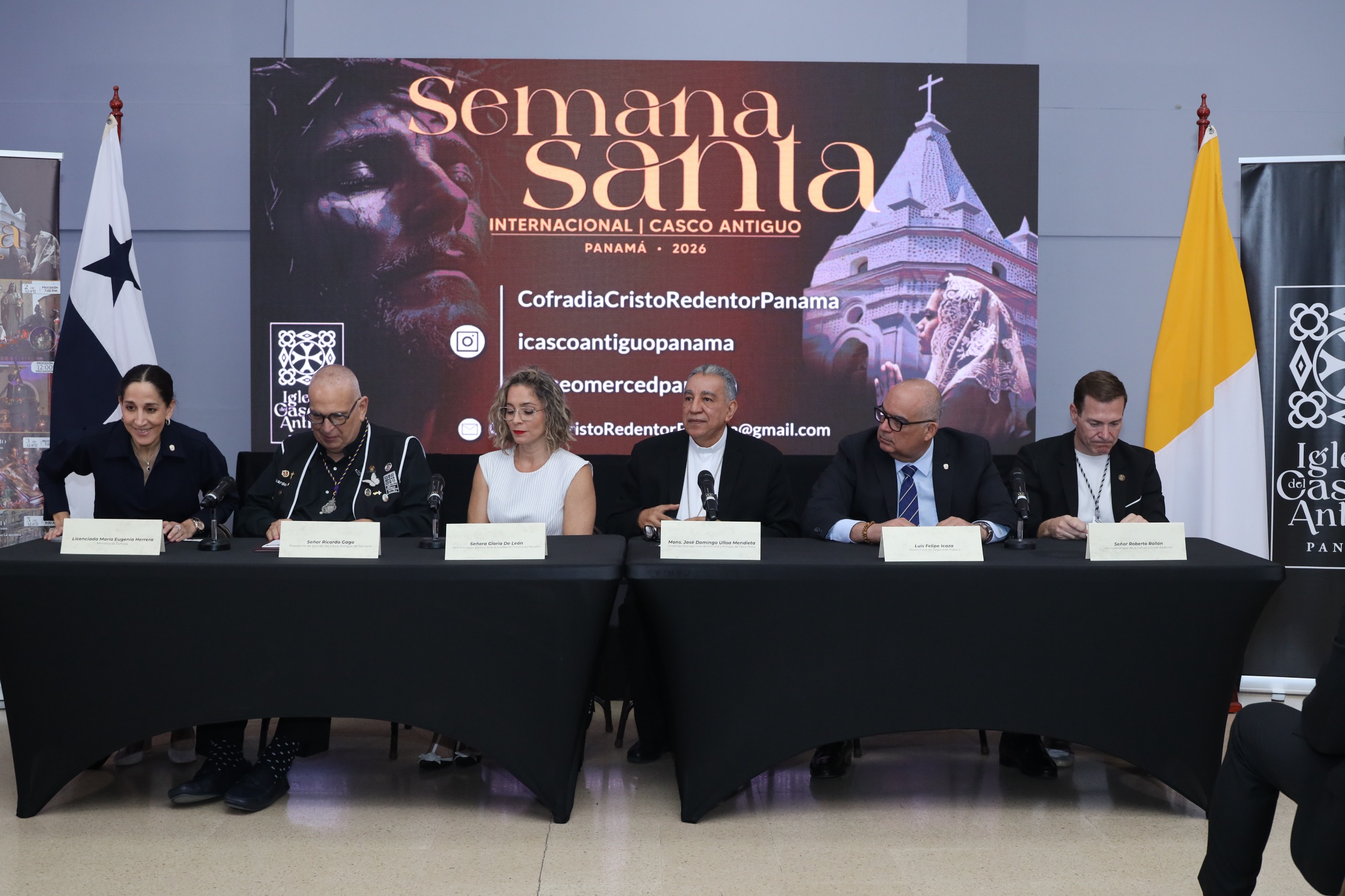 En la Solemnidad de la Anunciación del Señor, la Arquidiócesis de Panamá presentó en conferencia de prensa, presidida por el arzobispo José Domingo Ulloa Mendieta, 0.S.A., todos los detalles sobre las celebraciones de la Semana Santa 2026 en el Casco Antiguo. Durante el anuncio, destacó que las calles del Casco Antiguo con su riqueza histórica, cultural y espiritual, “se convierte en la Semana Mayor, en un verdadero templo vivo en el que la fe de nuestros pueblos se expresa con belleza, respeto y profunda devoción”. Esta celebración contará con la participación de ocho cofradías, 13 andas y cerca de cinco mil personas consolidándose como una de las manifestaciones religiosas más concurridas del país.