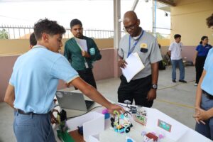 Entre los proyectos destacados estuvo “Grinbot”, creado por Jamell Batista y compañeros del Colegio Parroquial San Judas Tadeo, un robot diseñado como centro inteligente de reciclaje. “Investigamos los problemas que afectan a nuestra sociedad y nos motivó el tema de la basura. Diseñamos un robot que promueve el reciclaje a través de incentivos, con la meta de ayudar a cuidar el planeta y fomentar compromiso ciudadano”, explicó la estudiante.