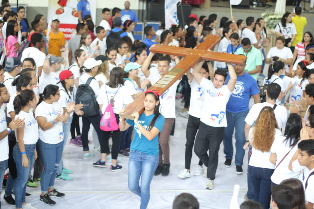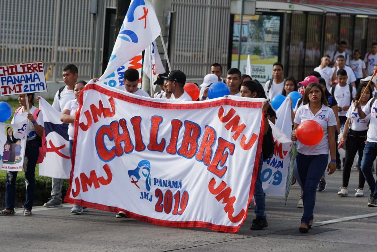 Desde tempranas horas de la mañana, una marea de jóvenes alegres caminaron desde la sede de la Universidad Tecnológica al Gimnasio de la Universidad Católica Santa María la Antigua, cantando y ovacionando a Dios y a la Virgen María, manifestando públicamente su compromiso de hacer presente a la juventud panameña en la JMJ.